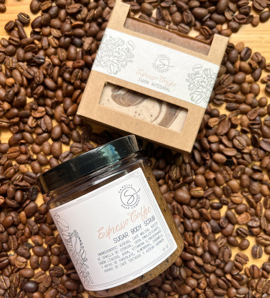 Jabones, exfoliantes y velas hechos a mano con notas de espresso y avellanas tostadas para llenar tu piel y tu hogar de calidez y energía.
