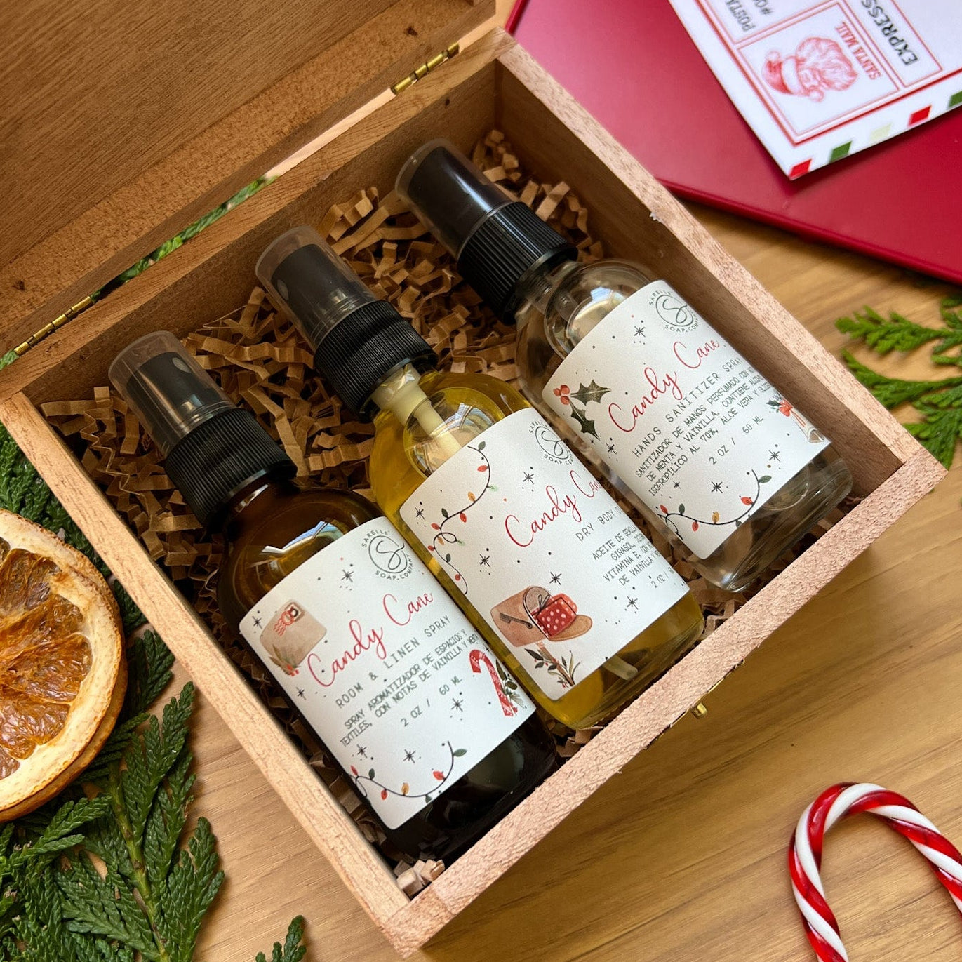 Cada producto también está disponible en su versión individual para regalo, presentada en una encantadora cajita tipo Christmas Cracker —un empaque festivo en forma de caramelo, listo para obsequiar.